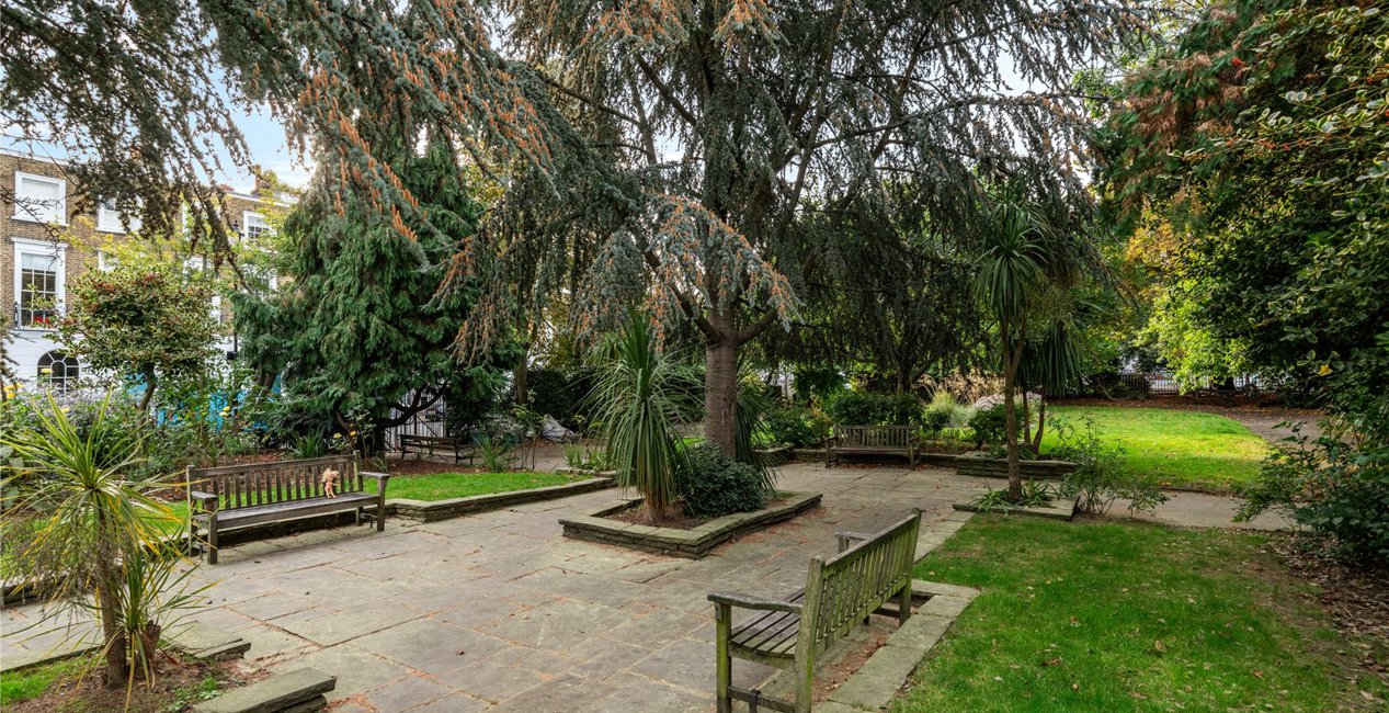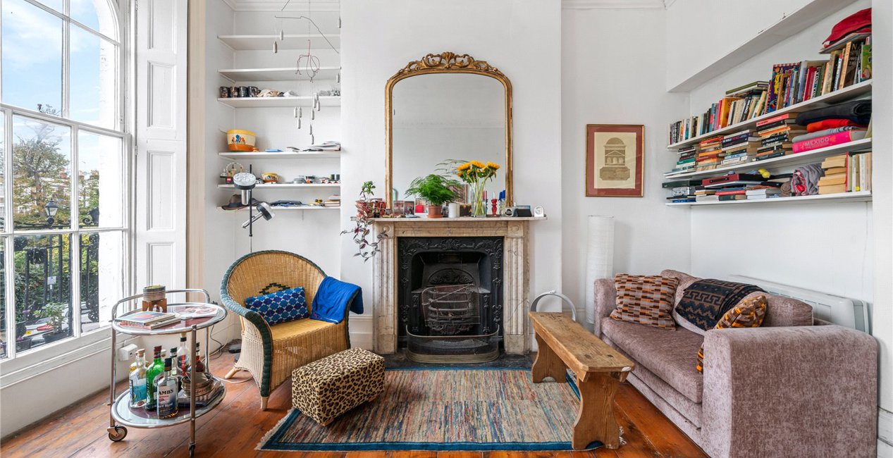 Rich in character is this fine Grade II early Victorian flat, located on Gibson Square, one of Islington’s most sought-after garden squares. Offering an abundance of space and light throughout, the flat is set upon the first floor and enjoys great ceiling height and wonderful light via the two floor to ceiling sash windows, which are complimented by wrought iron balconies and the original full-length wooden shutters. This grand room also offers pretty views over Gibson Square and enjoys a westerly facing aspect, perfect for watching the sun go down. The property offers an array of period features including cornicing, a beautiful working fireplace with marble surround, high skirting and original wooden floorboards.