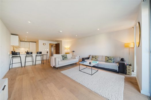 This sleek apartment offers two well proportioned double bedrooms with the master bedroom benefitting from having an immaculate ensuite bathroom. Additionally, there is a modern shower room that is tiled throughout. Set within a secure development, the flat further benefits from wooden flooring, good ceiling height, underfloor heating throughout, concierge service and a long lease of 234 years.