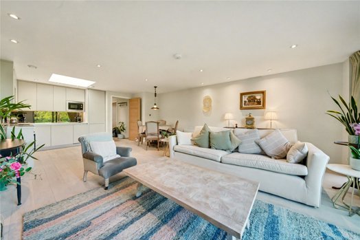 The apartment comprises of an inviting wide entrance with a generous open plan kitchen / living / dining room set to the left-hand side which enjoys tranquil views over the park and onto the surrounding Victorian homes found on Arundel Square. This great entertaining space, benefits from having been reconfigured, which incorporates the kitchen area into the reception area, in addition the kitchen benefits from having a large skylight. The open plan reception area offers good natural light from the floor to ceiling windows and glazed doors which lead to one of the balconies with open views over the treetops and rooftops.