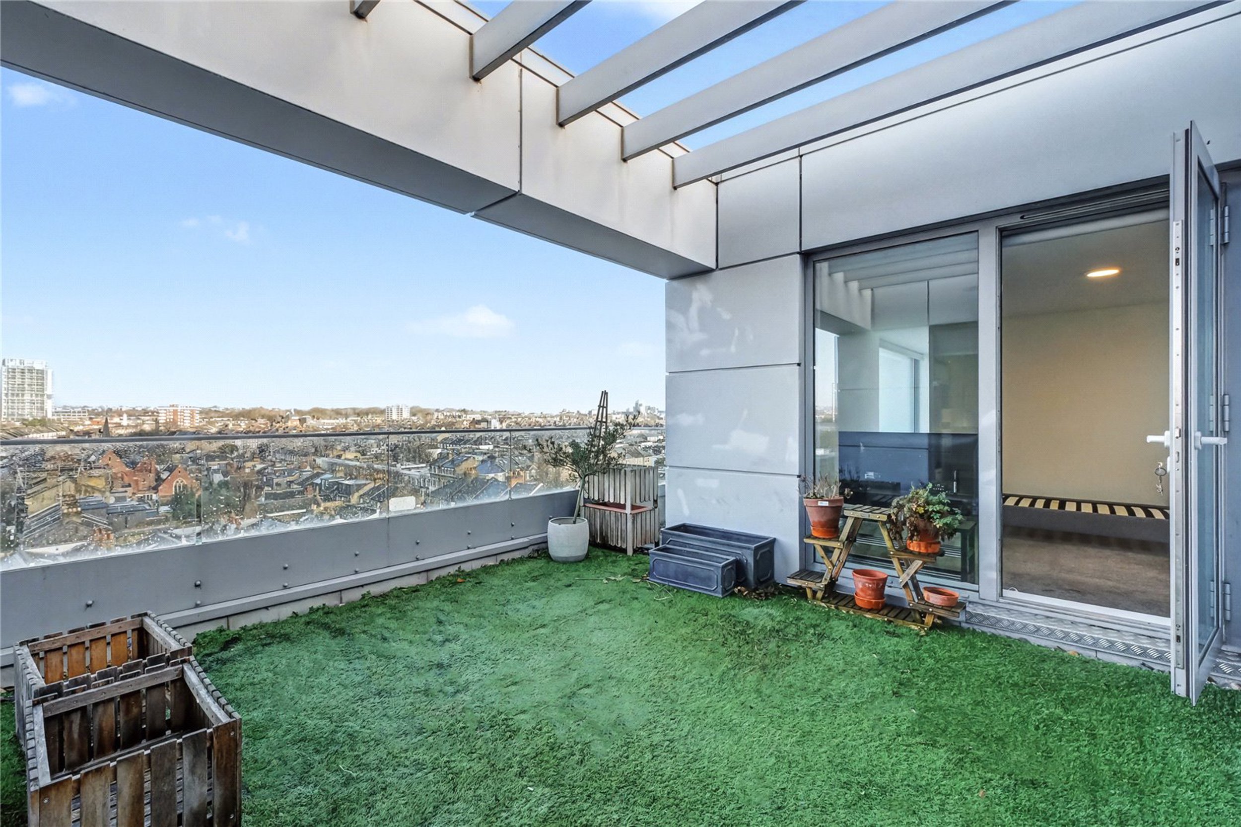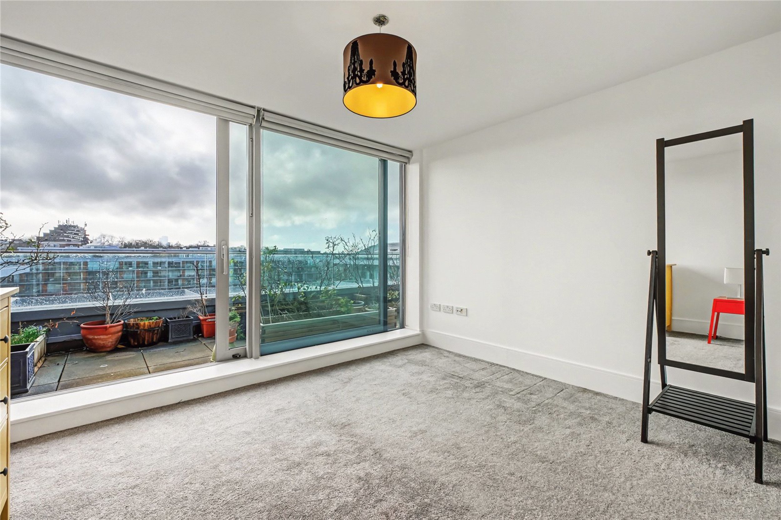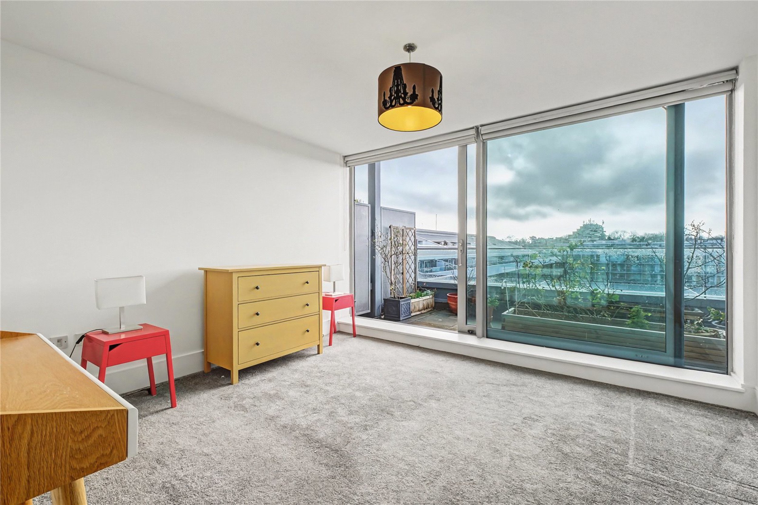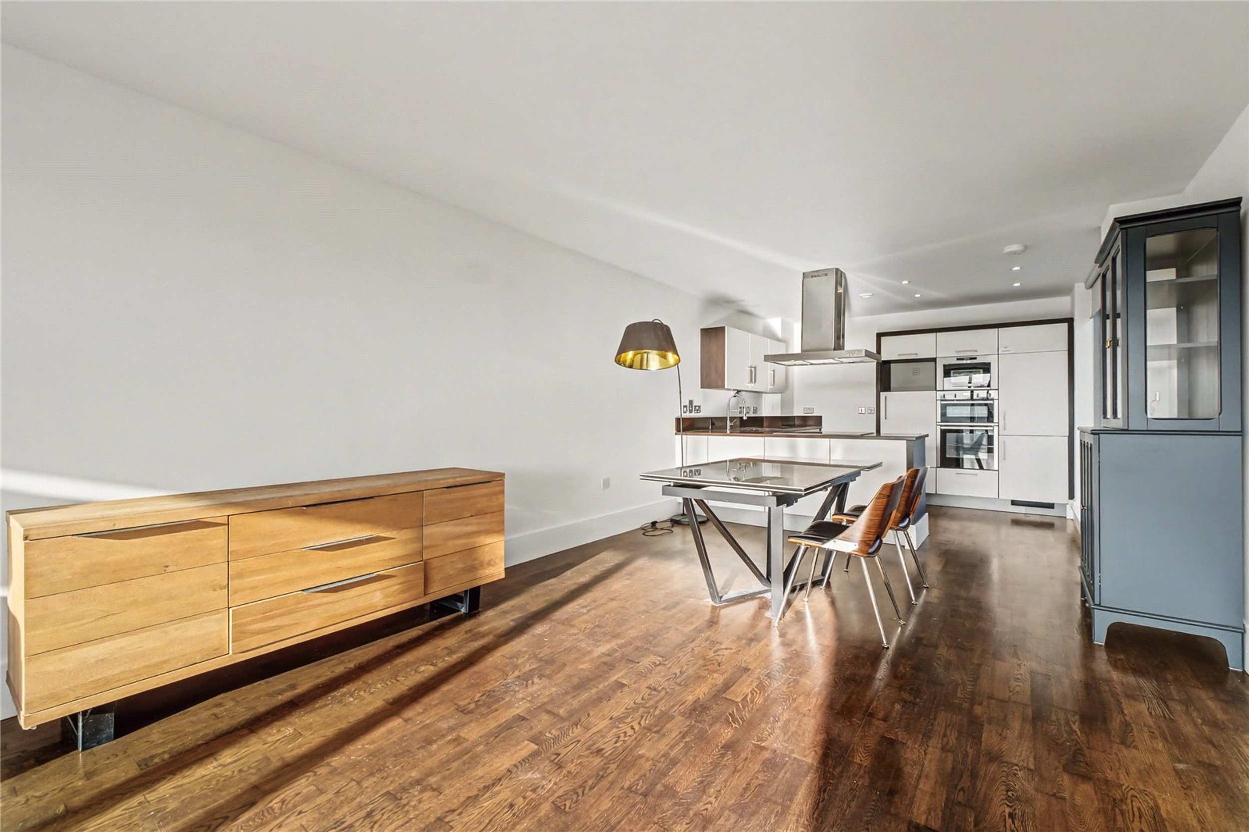 The stunning open plan kitchen / living / dining room is a truly impressive space, flooded with light from all angles and offering direct access to both terraces. Finished with dark wood flooring, this superb entertaining area provides ample room for dining and relaxing, alongside a stylish fully integrated white kitchen complemented by stone worktops. Offered to the market chain-free, the property also benefits from a modern family bathroom. This stylish home enjoys a tranquil setting with views over the former Arsenal pitch, now transformed into beautifully landscaped communal gardens.