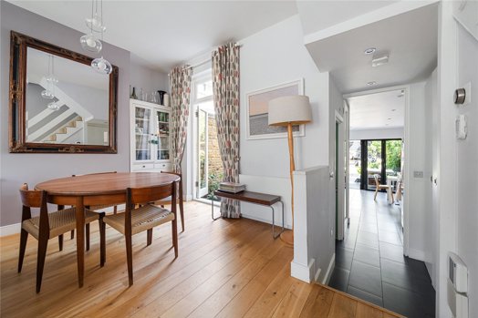 This property was completely refurbished in 2010, including a new roof, re-wiring, re-pluming, wood flooring, kitchen, bathrooms, cloakrooms, and external rendering. The extensive developments have created a wonderful home with a warm and welcoming charm. The open plan living room has a wood burner and attractive wood flooring. This is a now a generous space with room for two large sofas and dining table. There is a ground floor guest cloakroom and plenty of storage and cloak space. To the rear down a couple of steps is a modern fitted kitchen with a homage to the previous kitchen colours. Modern bi-folding patio doors and floor tiling lead out to the delightful landscaped rear patio area and charming and well stocked rear garden. The stairs lead up to a split-level landing with the master bedroom to the front with fitted wardrobes, original sash-windows and air conditioning. The generous sized second bedroom is set behind with fitted wardrobes and views over the rear gardens. To the rear is the modern bathroom with bath and separate shower and sky light flooding the room with natural light. The 3rd bedroom is to the rear with views over the rear gardens. There is recently fitted wood flooring from the rear room through to the lower landing.