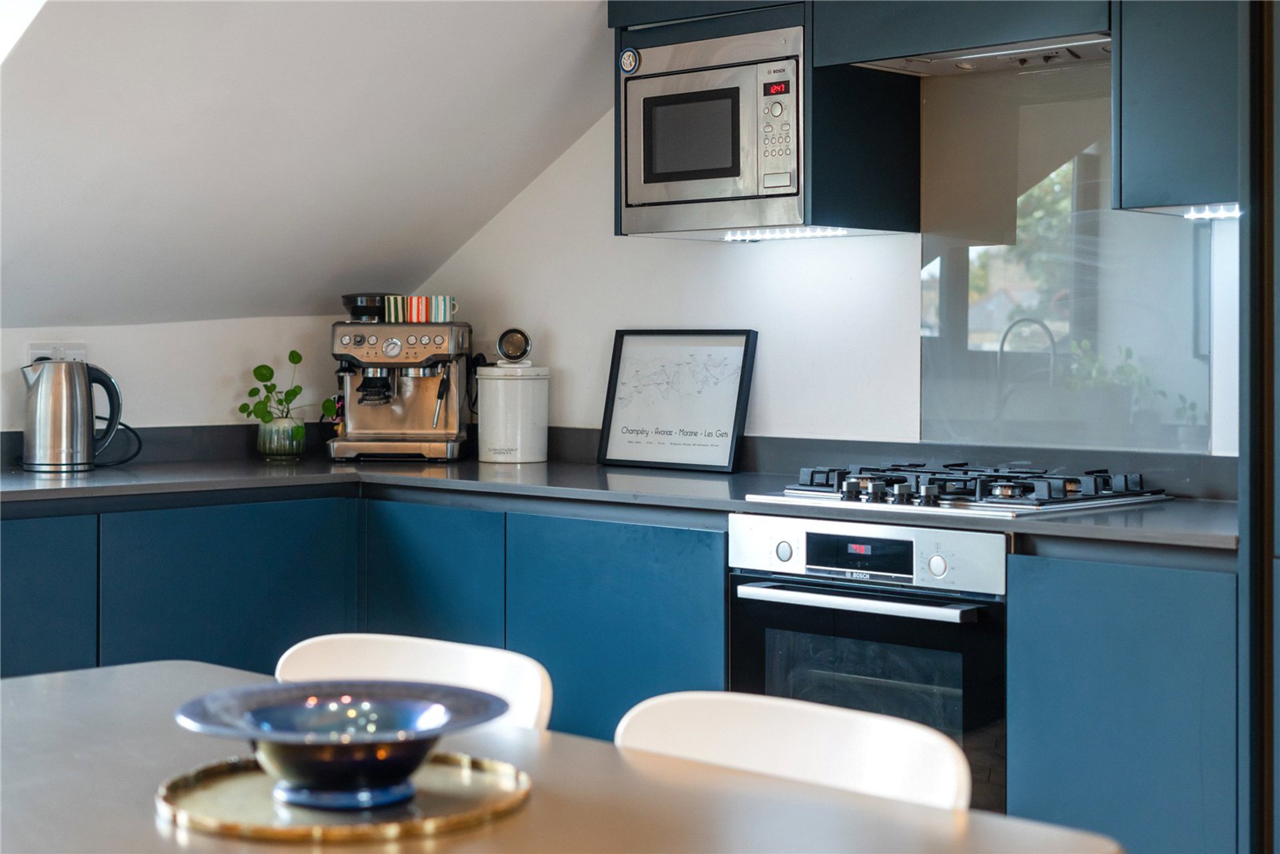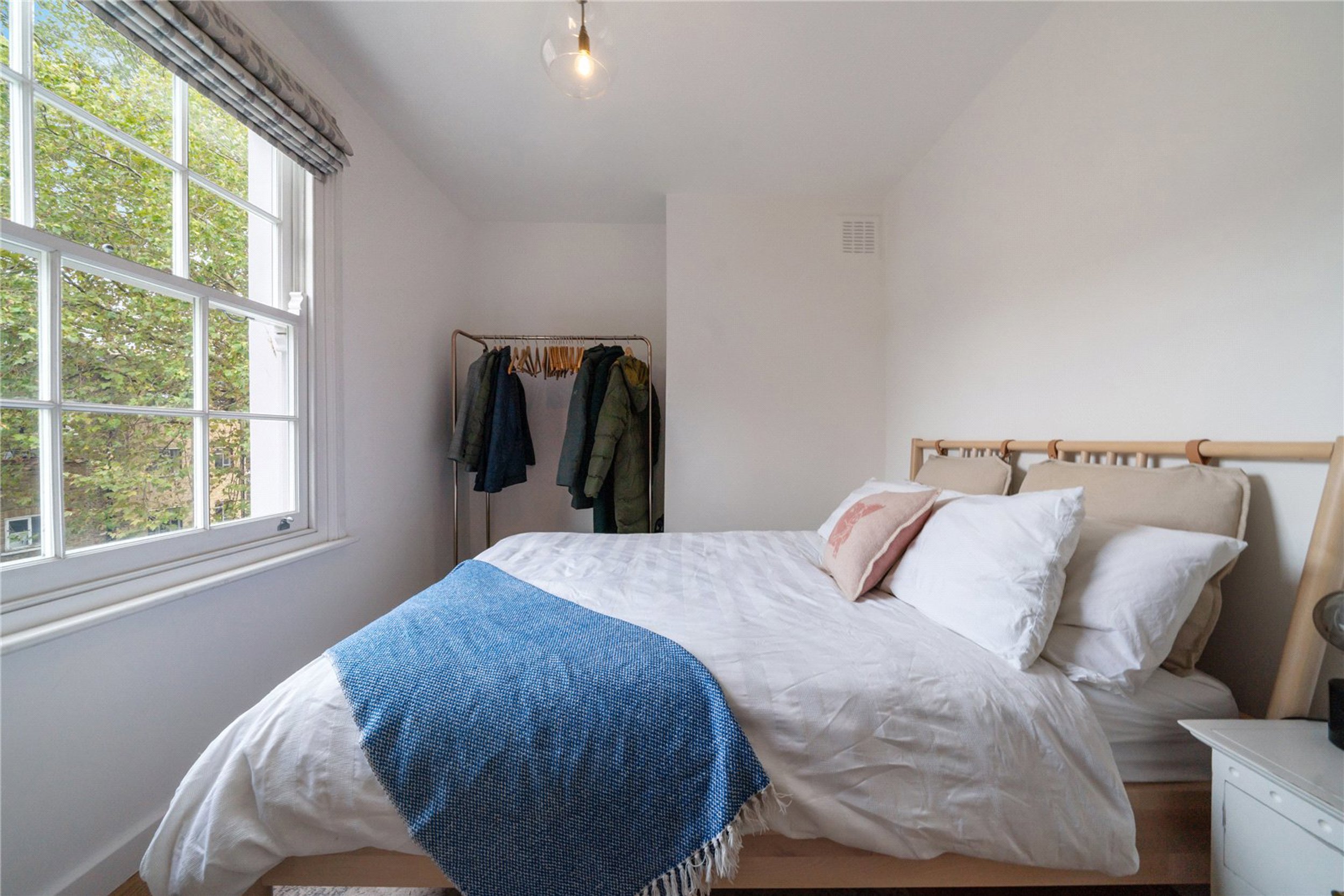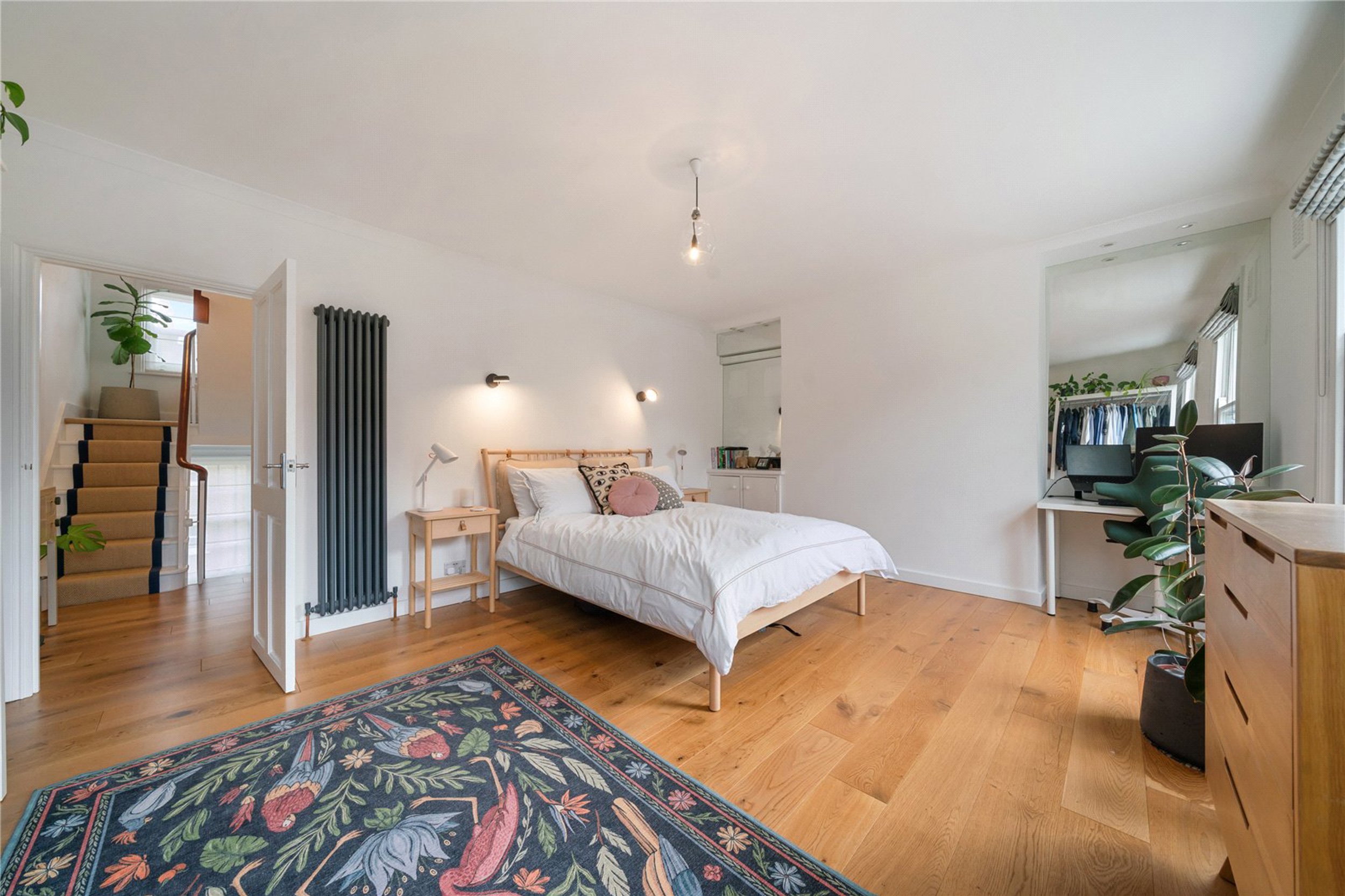 The flat is over the second and third floor of this period building. Across the lower level is a large, South facing principal bedroom, a good second double bedroom and a separate contemporary bathroom. Of note, is the top floor with the fabulous open plan kitchen and reception room.