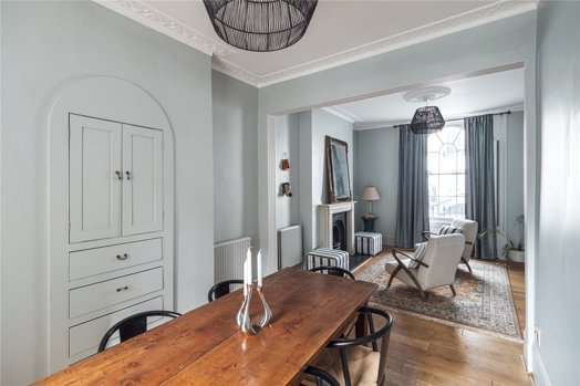 The elegant 27’ reception room has many of the period features you would hope to find in a home of this style, including fireplace and original shutters. The bright, open plan kitchen and living area at garden level has been extended at the rear with a glazed dining area and double doors leading on to the decked, 20’ courtyard garden. Importantly, there is direct access from the street, two under pavement vaults and a utility room at this level. Over the first and second floor are four good bedrooms, a further small dressing room area and two bathrooms.
