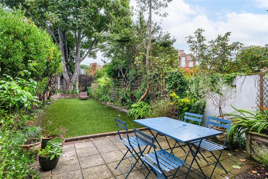 The 81ft garden is a peaceful and private haven. Unusual in its size for the area, it is low maintenance, featuring artificial grass, mature trees and plants. There is a generous patio and an Asgard bike shed. It gives ample scope to extend the house, subject to planning permissions.
