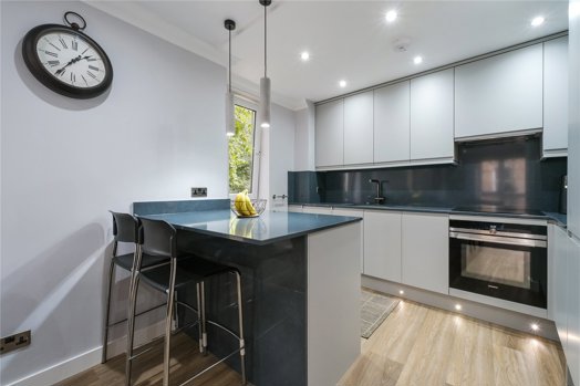 The dual aspect open plan kitchen / dining / reception room is a great entertaining space with wonderful views over Postman’s Park and towards Little Britain. The stunning seamless fully integrated kitchen is finished with grey units that are complemented with quartz worktops along with quartz splashbacks, in addition there is a large island which doubles up as a breakfast bar.