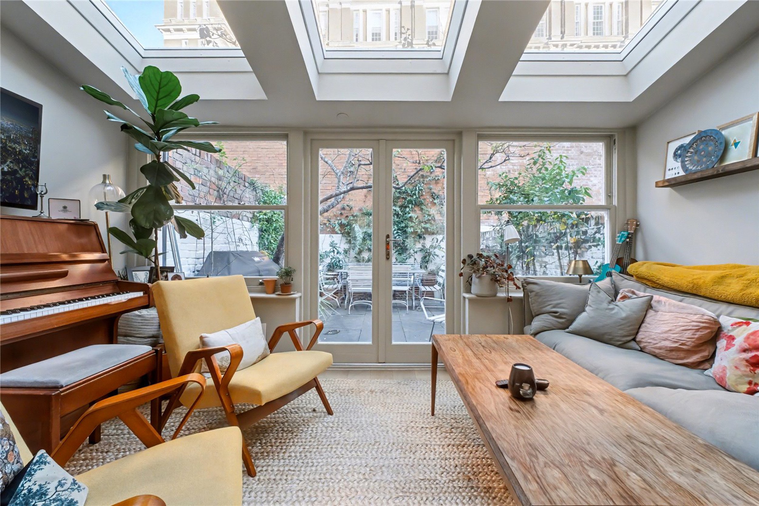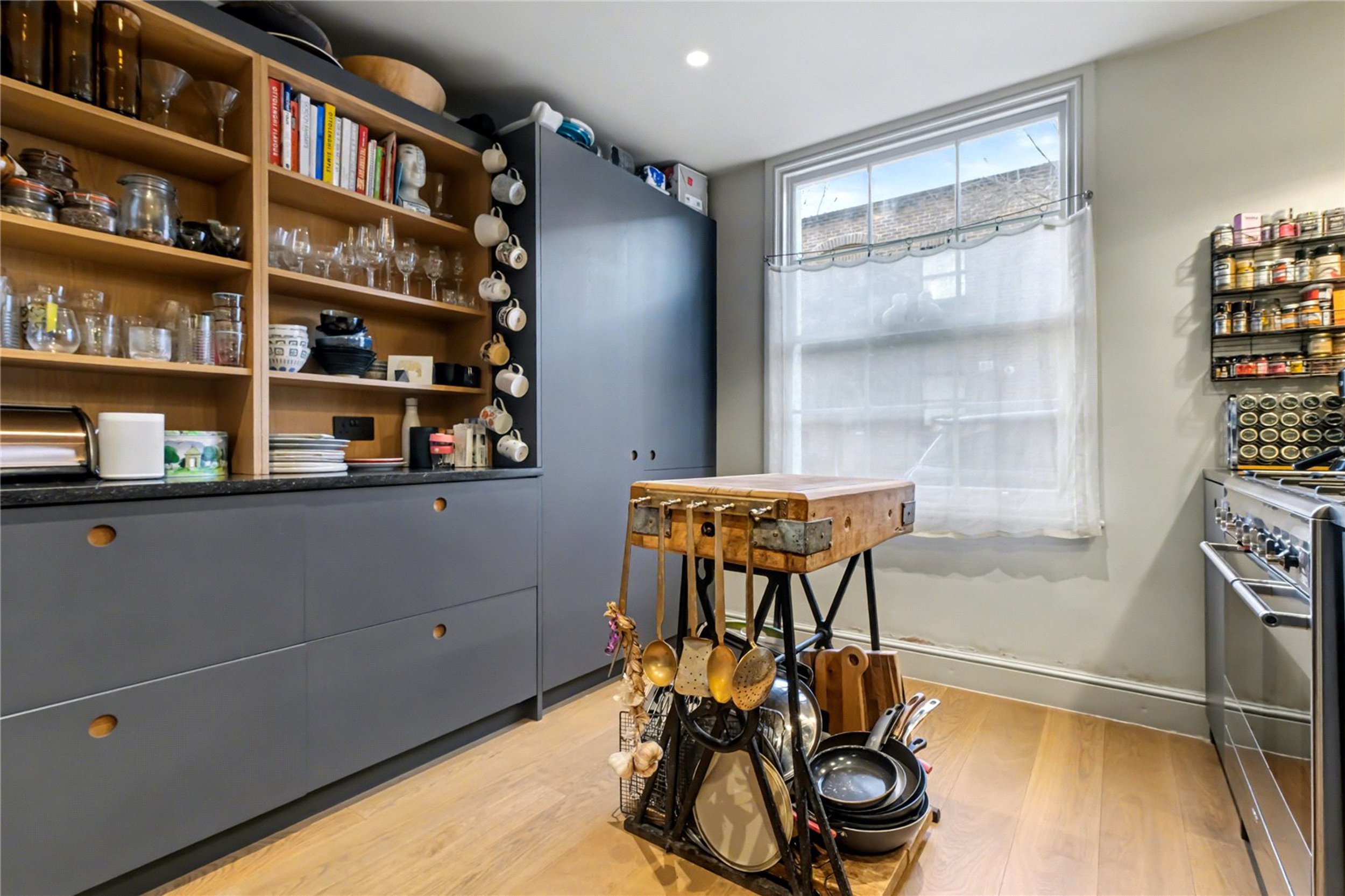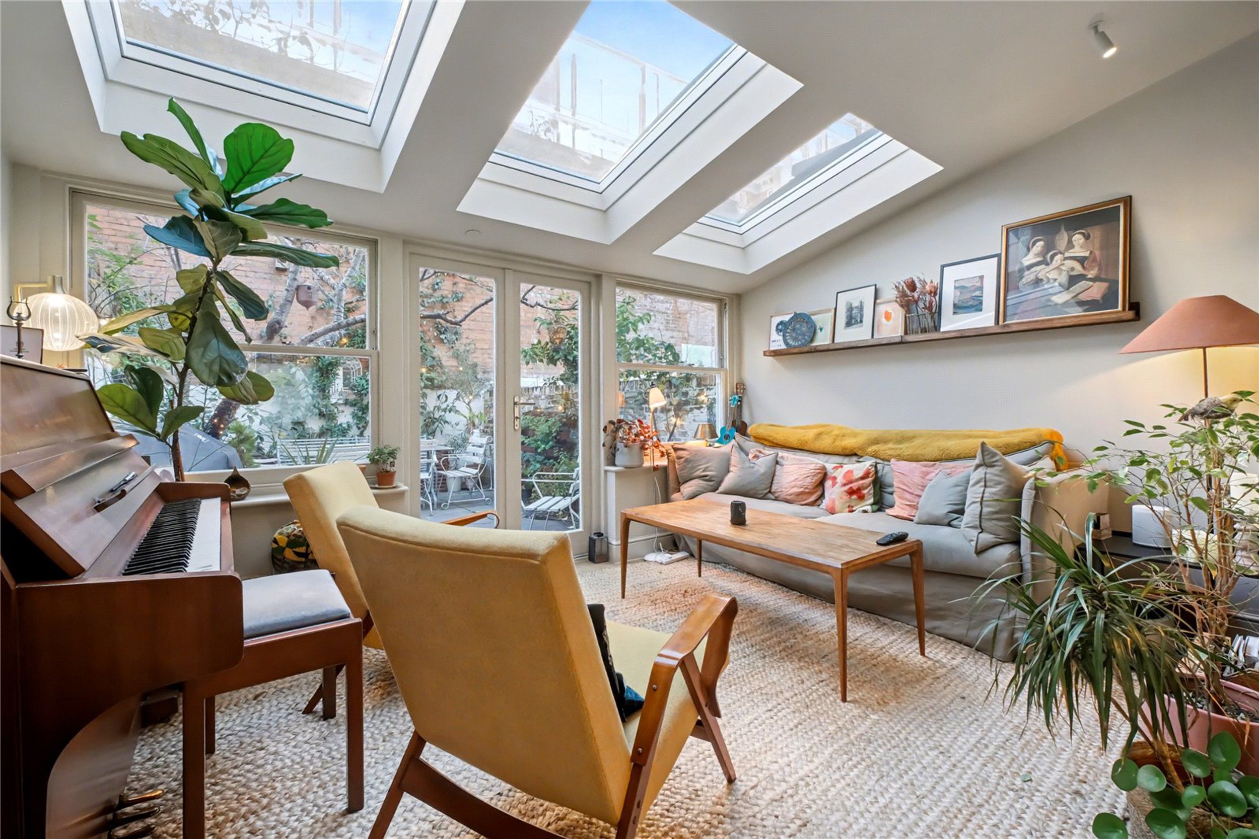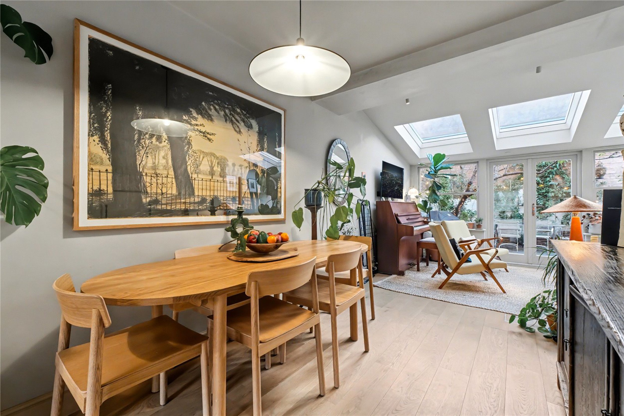 Offering space, light and style, this charming three-bedroom house on Moon Street has been refurbished to a very good standard with a range of tasteful features throughout. The ground floor comprises a bright and spacious open-plan kitchen and living area. The contemporary kitchen includes integrated appliances, and the rear living space benefits from three skylights that fill the room with natural light. A beautifully finished WC is also located on this floor.
