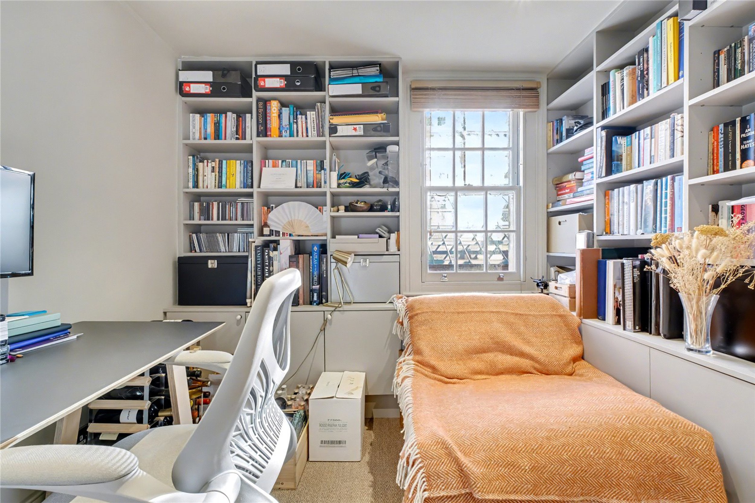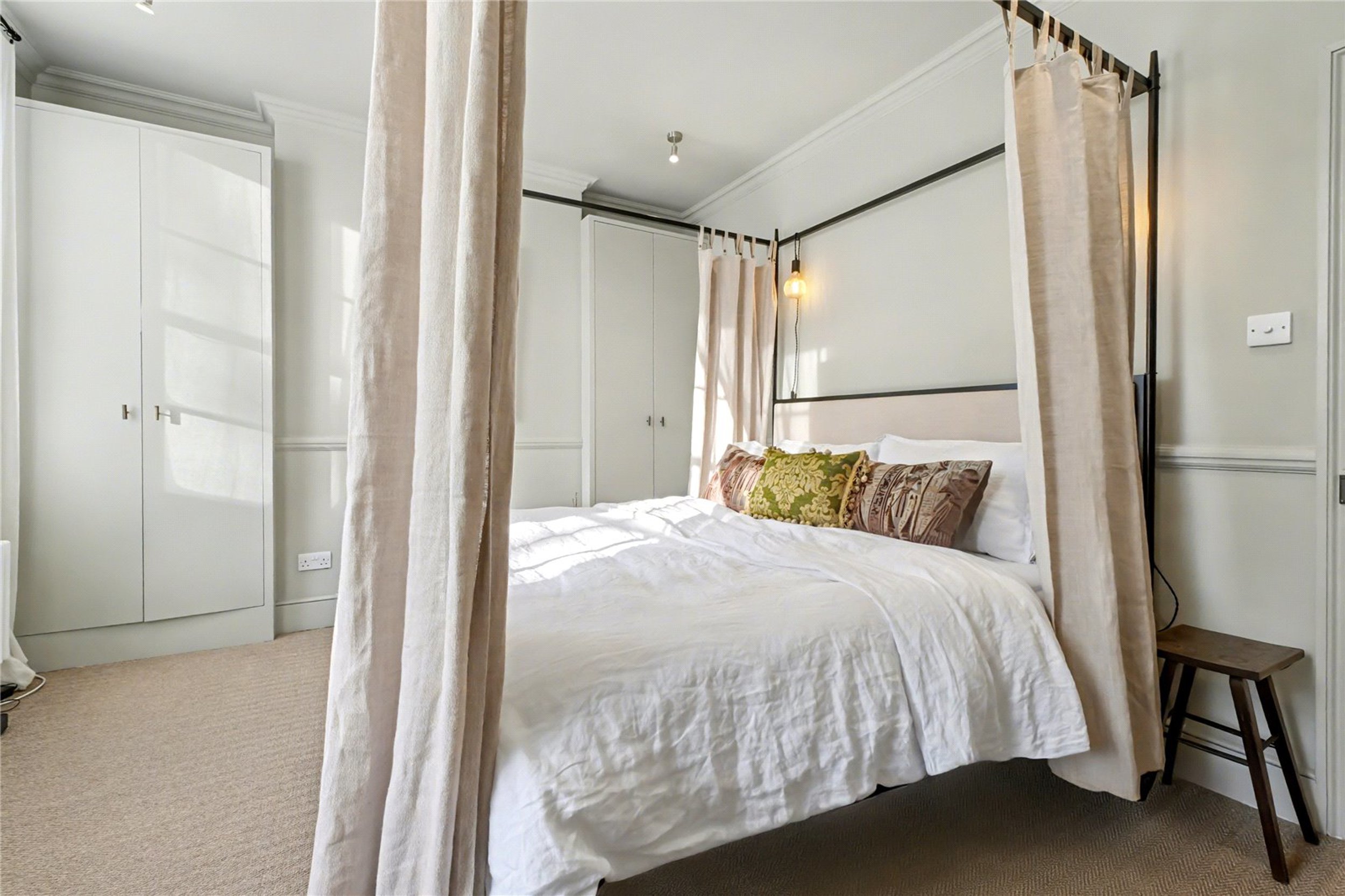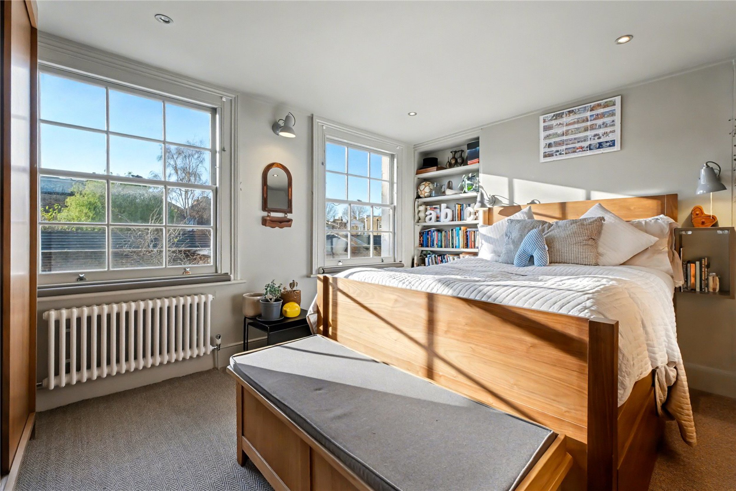 The principal bedroom is situated on the first floor and features high ceilings and built-in storage. Next to it is a stylish bathroom finished to an excellent standard, complete with generous storage. The second floor offers two further well-proportioned bedrooms, both with additional built-in storage. At the rear of the property is an 18-foot garden that provides a lovely outdoor space ideal for hosting or relaxing.