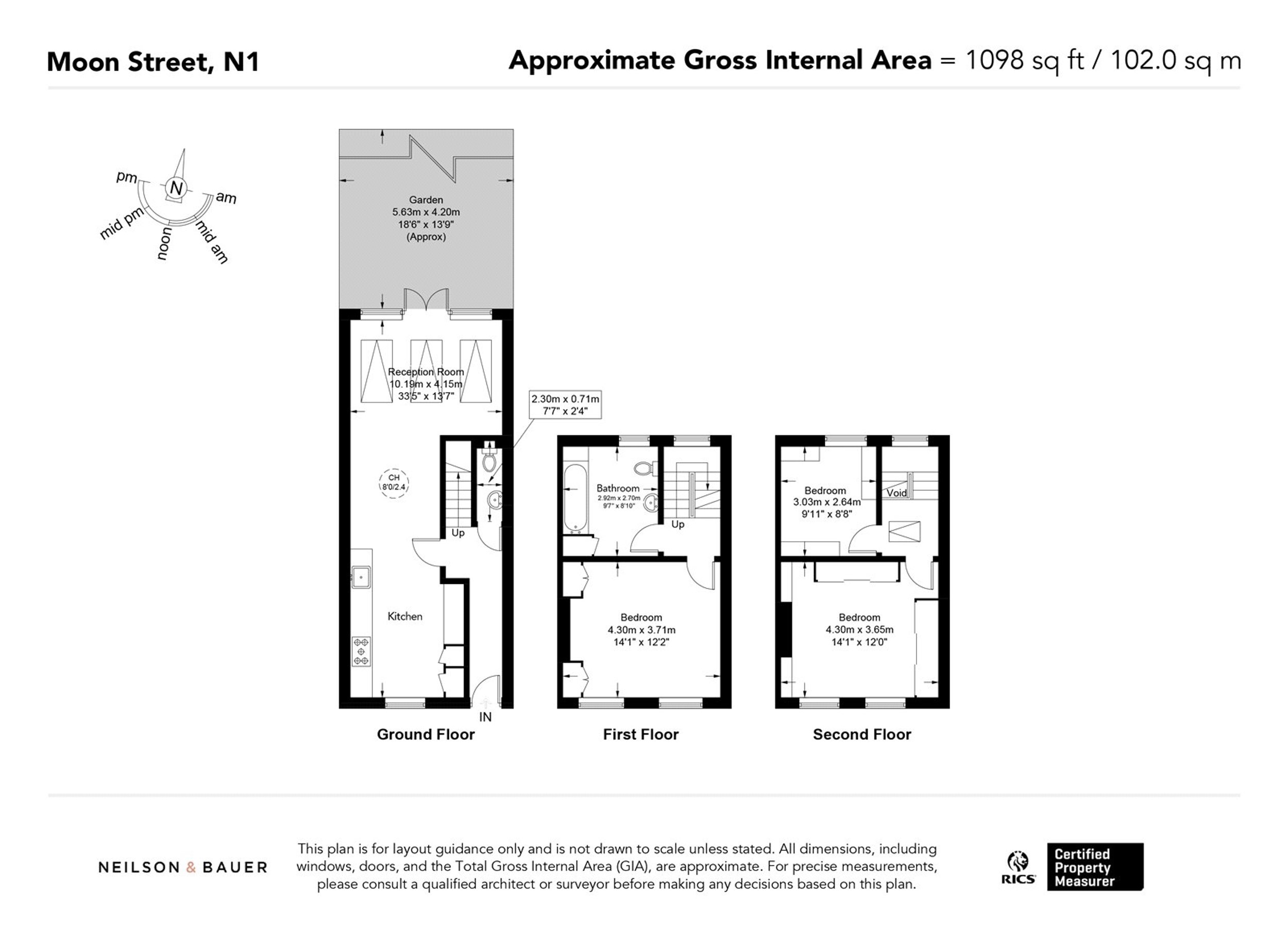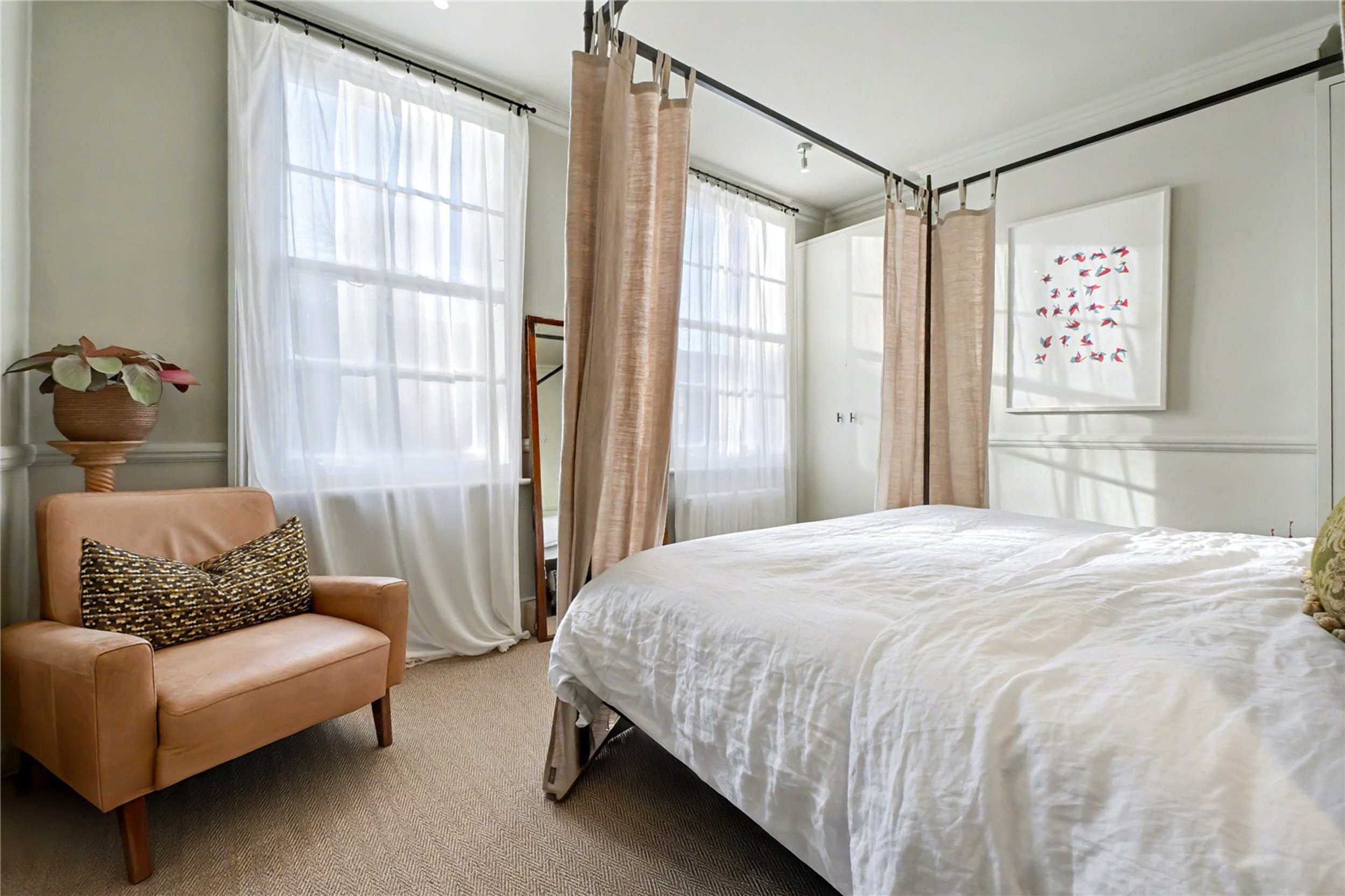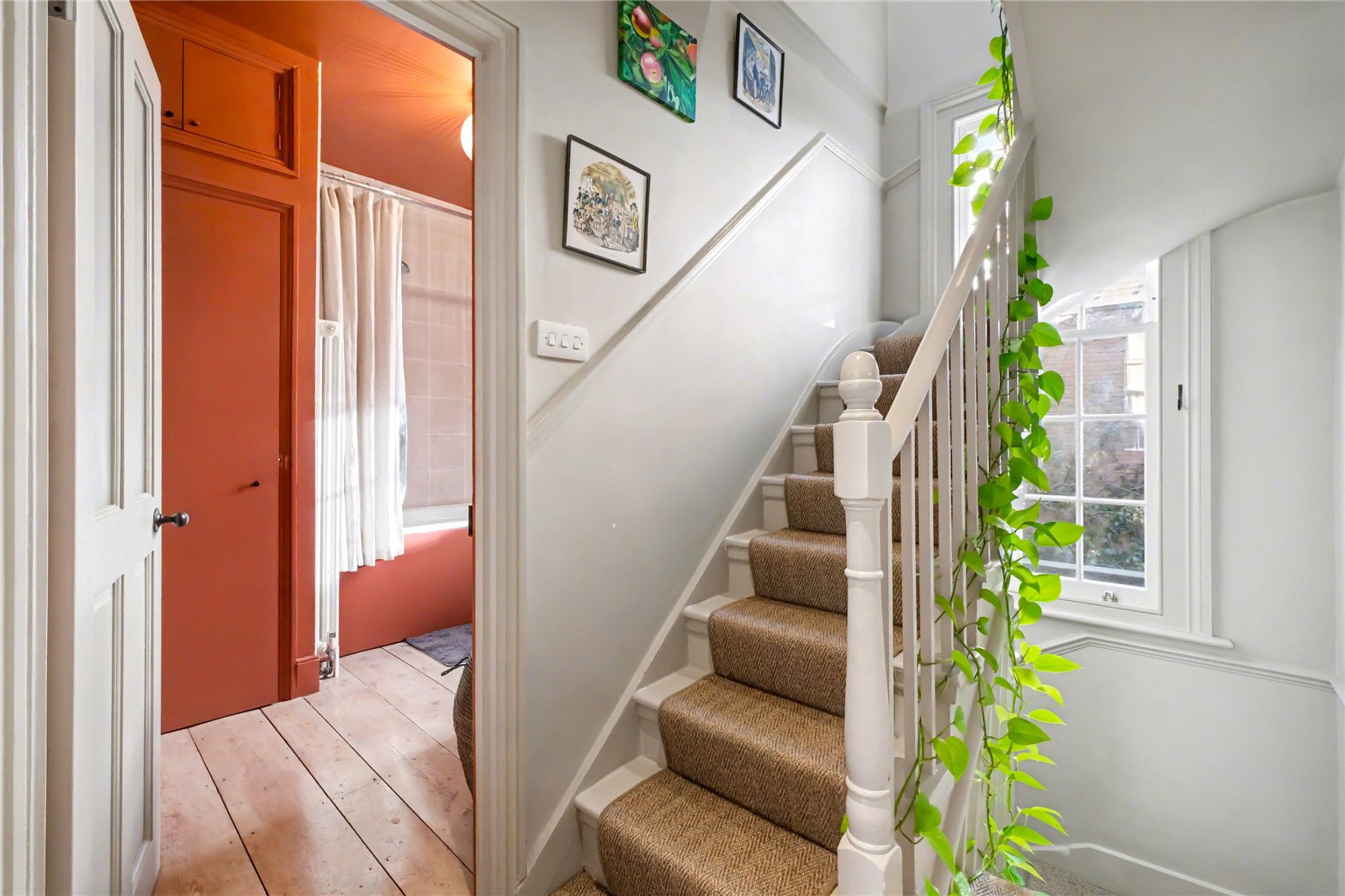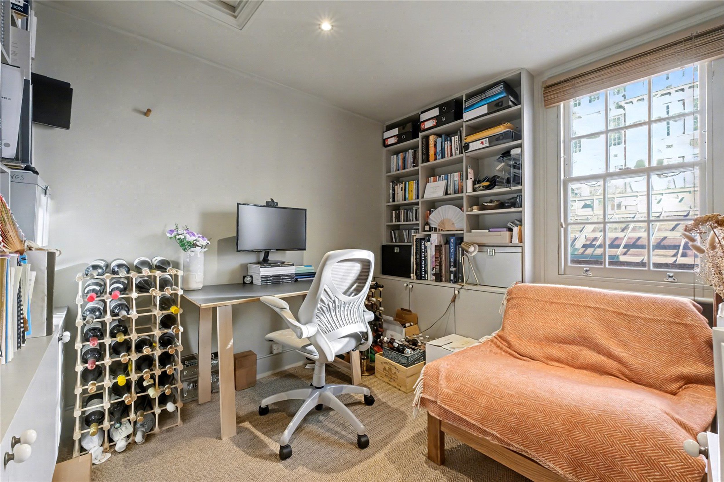 The principal bedroom is situated on the first floor and features high ceilings and built-in storage. Next to it is a stylish bathroom finished to an excellent standard, complete with generous storage. The second floor offers two further well-proportioned bedrooms, both with additional built-in storage. At the rear of the property is an 18-foot garden that provides a lovely outdoor space ideal for hosting or relaxing.