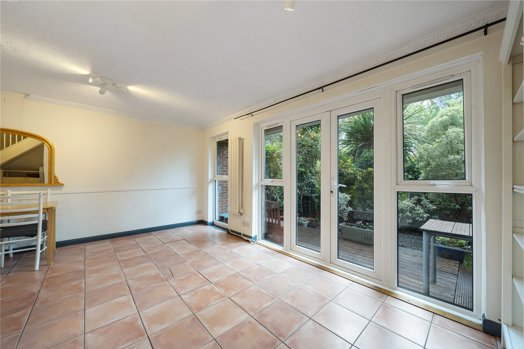 The large living room is open plan with the fitted kitchen to the front overlooking communal gardens. The reception and dining area is set to the rear with windows and doors opening to the delightful private and well stocked rear patio and garden. The garden takes sun from late morning through to sun set.